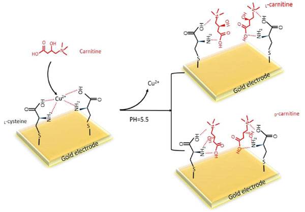 图5半胱氨酸修饰电极上Cu2+手性识别肉碱分子