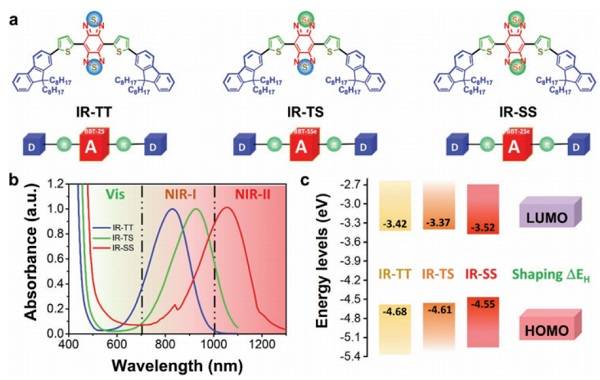 到目前为止,所有报道的NIR-II PTT试剂都是无机材料或聚合材料。到目前为止,尚无关于具有NIR-II反应的小分子PTT药物的报道。与无机和聚合物材料相比,小分子材料通常具有更好的生物相容性,尤其是较高的身体清除率。在过去的几年中,已采用了各种不同的策略,例如引入分子内电荷转移(ICT)和具有运动灵活性的分子片段,来增强NIR光热转换。然而,这些方法的效果仅限于调节NIR-1窗口中的光收集。因此,非常需要开发新的方法来将这些小分子PTT试剂的反应转变为NIR-II方案。在过去的几十年中,具有电子离域和光捕获性能的共轭小分子已经广泛应用于有机发光二极管(OLED),有机光伏(OPV)和有机场效应晶体管(OFET)。***近的进展表明了它们在光收集和放大能力方面的优势,并促进了包括光学生物传感器,生物成像和光疗在内的大量生物医学应用。当前的开采主要集中在可见区域,这阻碍了它们在深层组织中的应用。近红外共轭小分子的发展引起了越来越多的关注,特别是光热分子。然而,在NIR-II窗口中涉及共轭分子的PTT的报道很少,特别是,探索PTT分子的结构-功能关系仍然是一个挑战。
