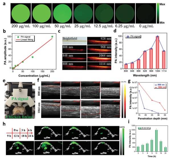 a)1064 nm辐照下不同浓度的IR-SS NP的水分散体的体外PA图像