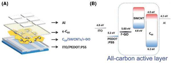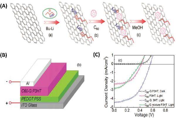 图3 非共价复合C60/石墨烯在光伏器件中的应用