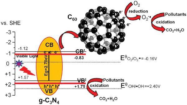 图14 g-C3N4-C60(键合)的电荷分离机理及光催化过程