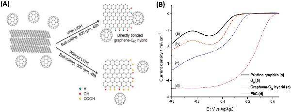 图8 共价复合C60/石墨烯电催化ORR中的应用